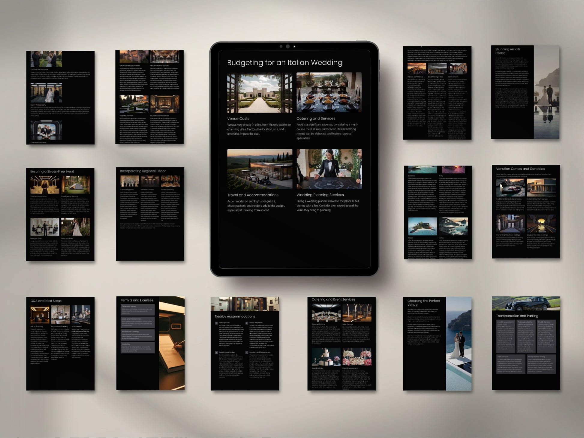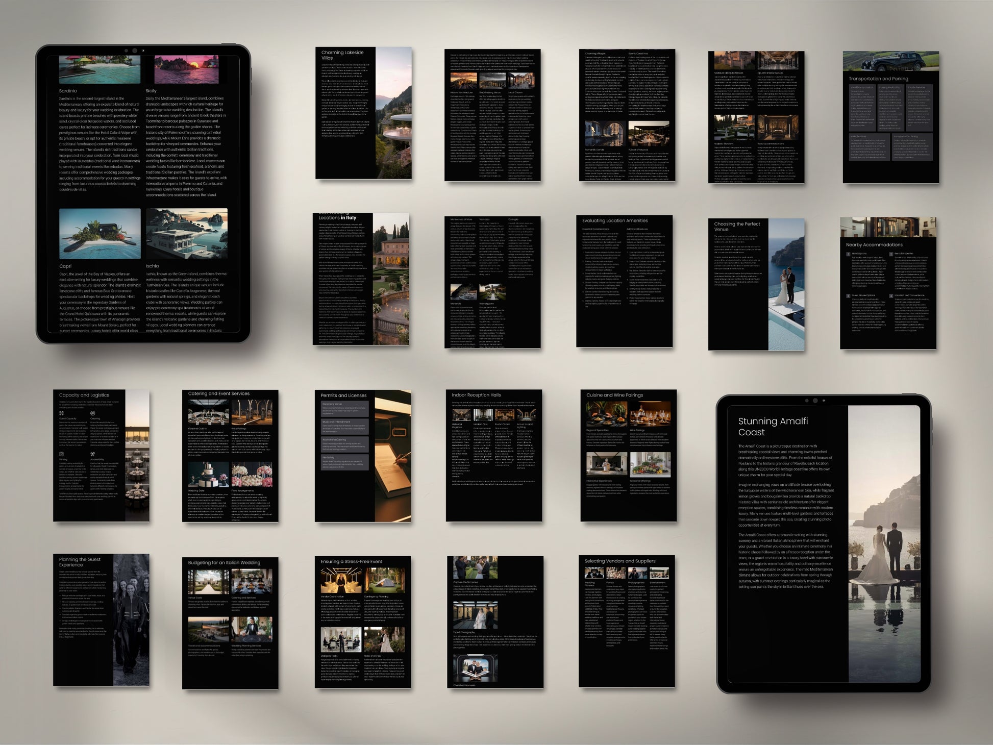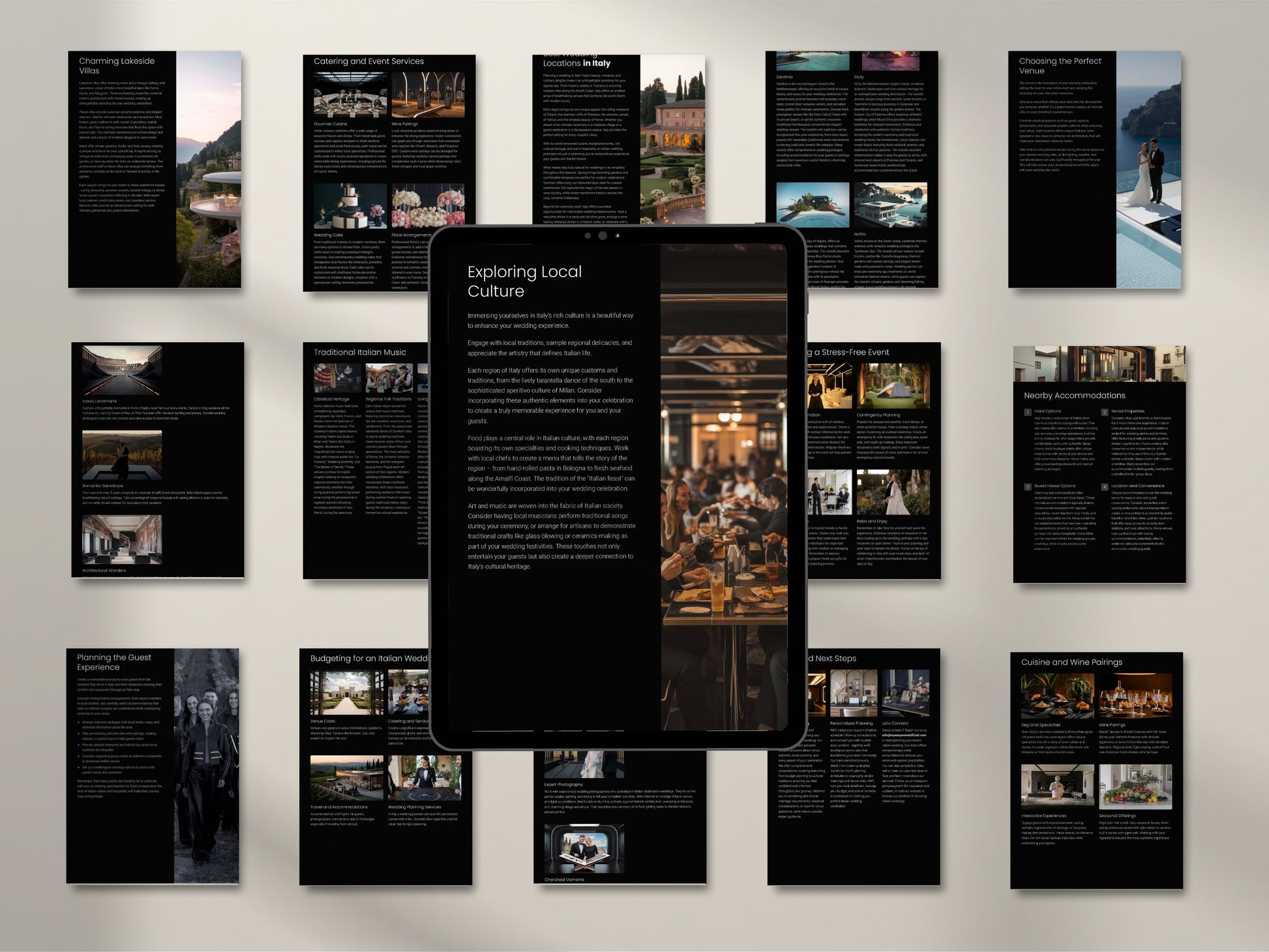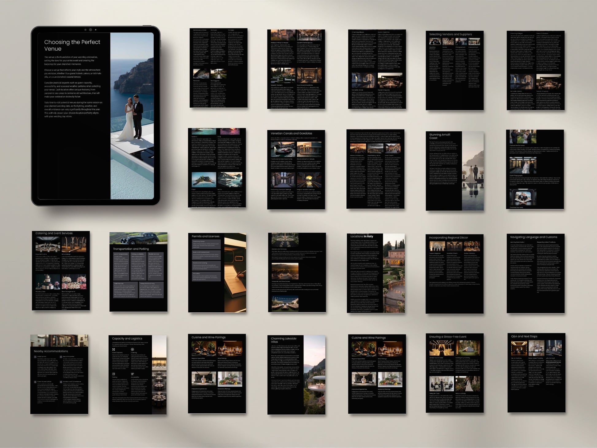 Explore stunning villas adorned with lush gardens, elegant castles steeped in history, and intimate seaside resorts overlooking crystal-clear waters. We provide detailed information on venue features, capacity, and services offered, along with helpful tips on how to select the venue that aligns with your vision and values. Additionally, our guide includes insights into local wedding traditions, catering options, and preferred vendors, ensuring that you have all the necessary resources to create a magical experience.